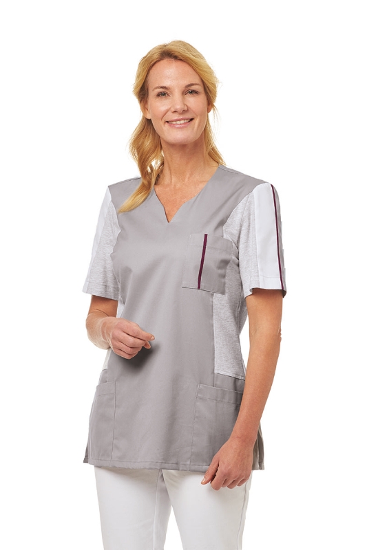 Schlupfjacke - Seitenpasse aus Piqué - hellgrau / beere